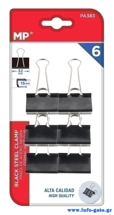 MP μεταλλικό κλιπ συγγράτησης εγγράφων PA383, 32mm, 6τμχ, μαύρα