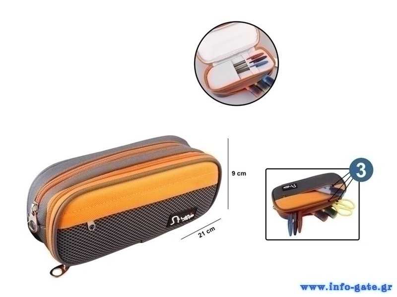 MP υφασμάτινη κασετίνα PA1022-05, 3 θέσεων, γκρι-πορτοκαλί