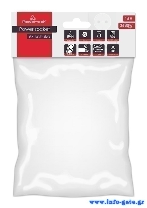 POWERTECH πολύπριζο PT-1071, 6x schuko, IP44, 16A, 1.5m, μαύρο