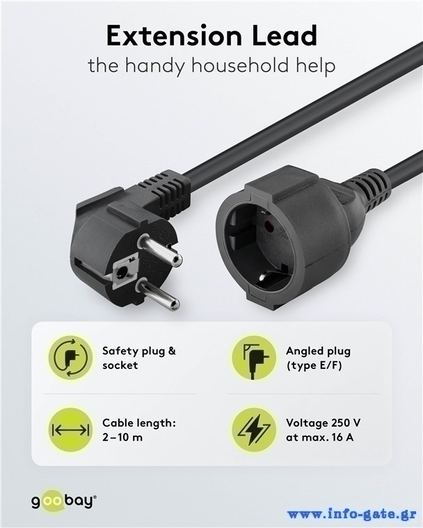 GOOBAY μπαλαντέζα προέκταση ρεύματος 93094, schuko, 3x 1.5mm², 5m, μαύρη