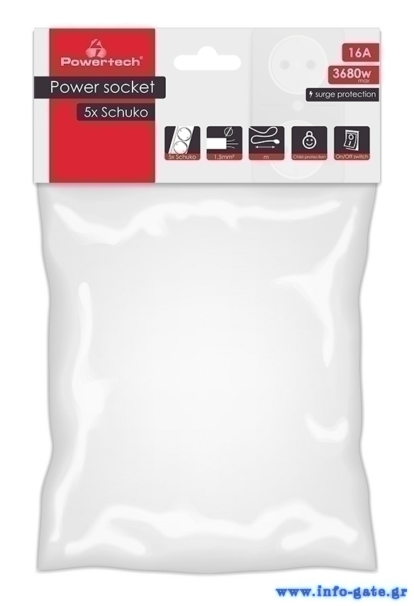 POWERTECH πολύπριζο ασφαλείας PT-881, 5x schuko, 16A, 1.5m, μαύρο