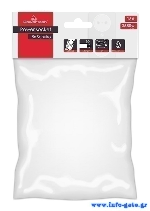 POWERTECH πολύπριζο PT-869, 5x schuko, 16A, 1.5m, λευκό