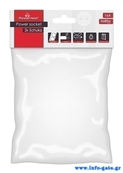 POWERTECH πολύπριζο PT-873, 3x schuko, 16A, 1.5m, λευκό