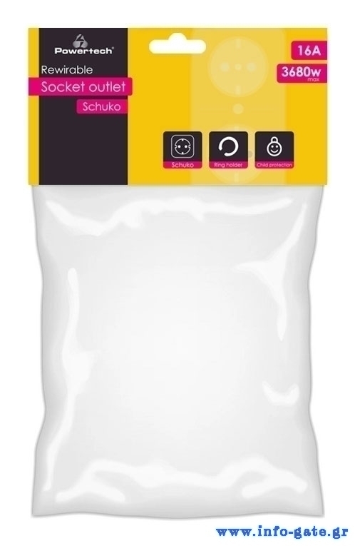 POWERTECH φις ρεύματος PT-887, 1x schuko, 16A, λευκό