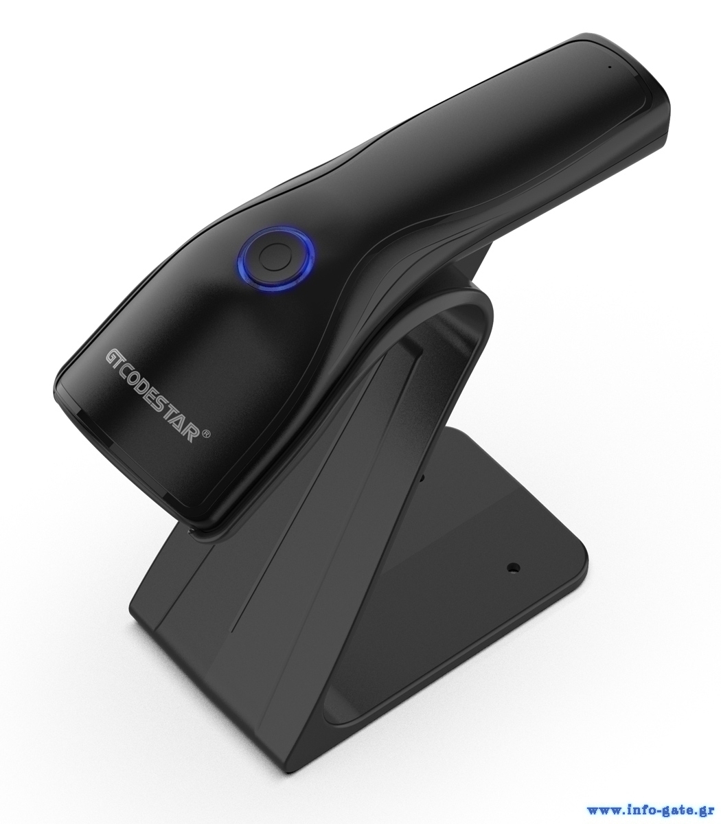 Barcode scanner της GTCODESTAR για γρήγορη και ακριβή ανάγνωση 1D & 2D barcodes. Υποστηρίζει ενσύρματη αλλά και ασύρματη σύνδεση μέσω ζώνης συχνότητας 2.4GHz και Bluetooth.