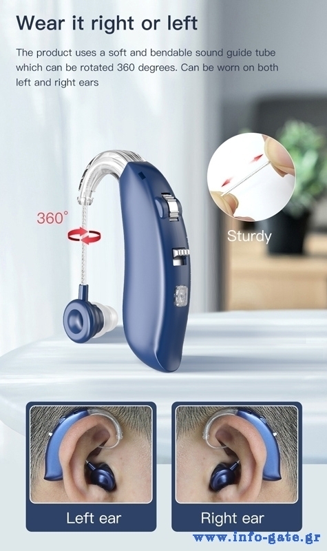 Είναι επαναφορτιζόμενο και συνοδεύεται από θήκη για την αποθήκευση και μεταφορά του ακουστικού.