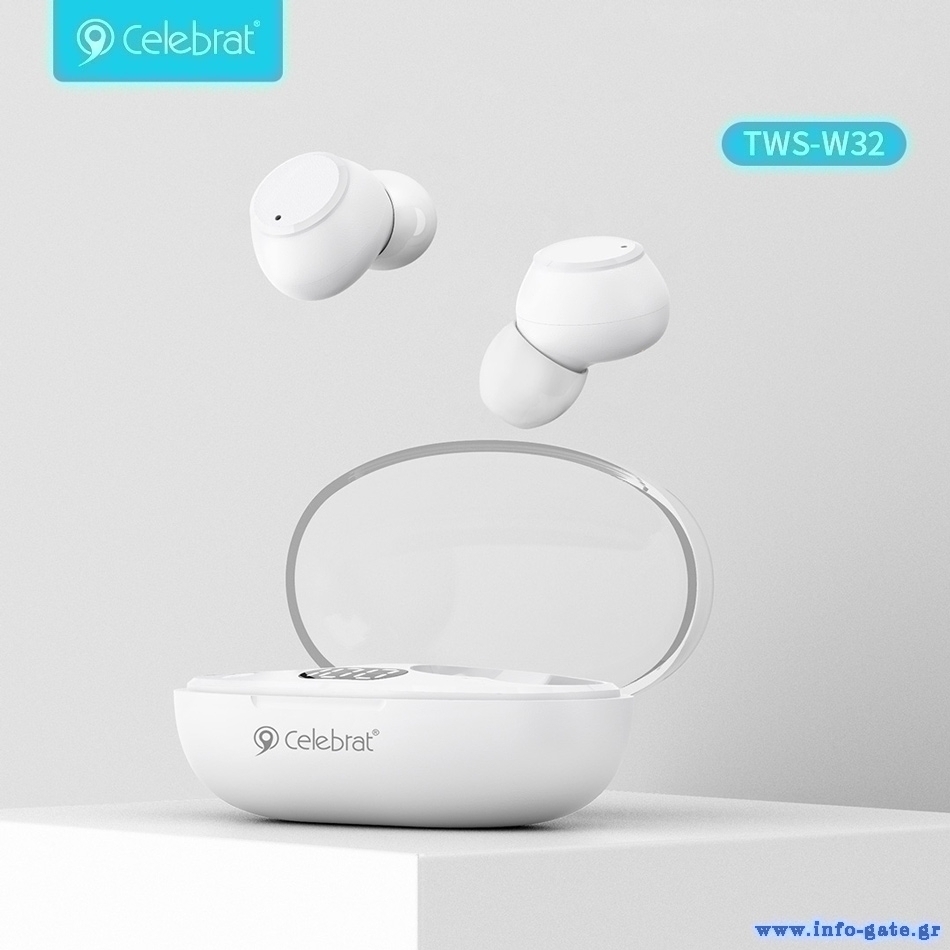 CELEBRAT earphones με θήκη φόρτισης TWS-W32, True Wireless, Φ8mm, λευκά