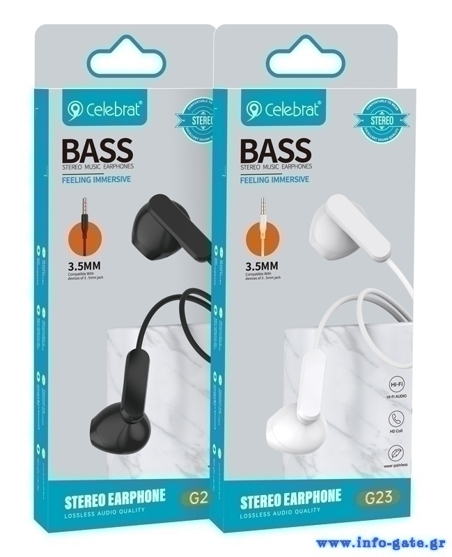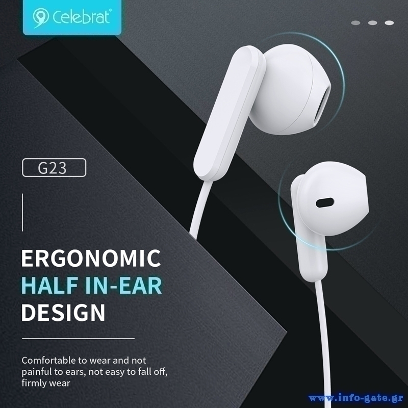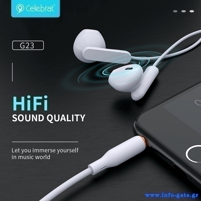 CELEBRAT earphones με μικρόφωνο G23, 3.5mm σύνδεση, Φ14mm, 1.2m, λευκά