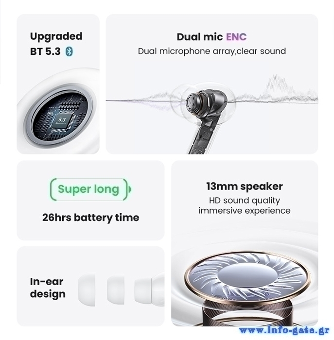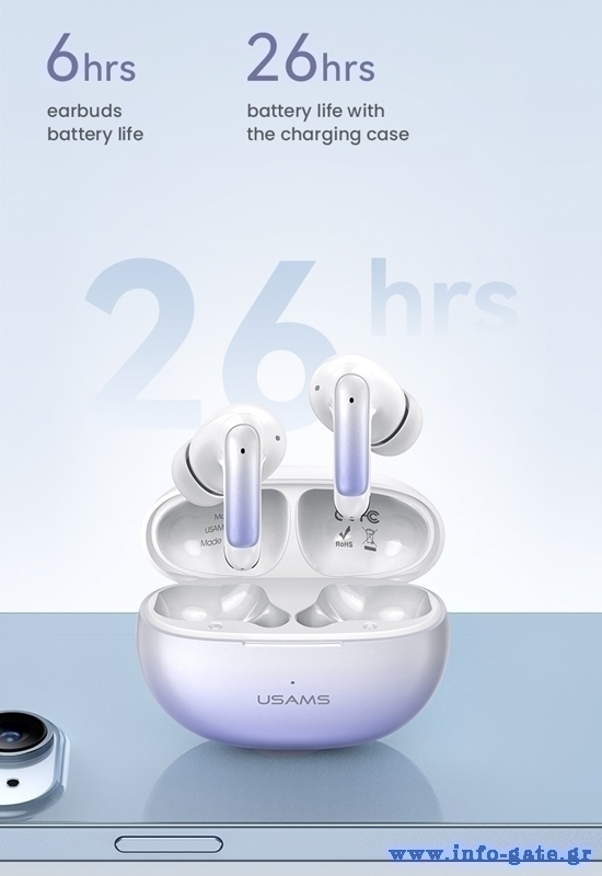 -Χωρητικότητα μπαταρίας Earbud: 35mAh