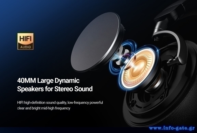 Διαθέτουν οδηγούς των 40mm που προσφέρουν ποιοτικό και πλούσιο ήχο για να απολαύσετε την αγαπημένη σας μουσική χωρίς περιορισμούς.