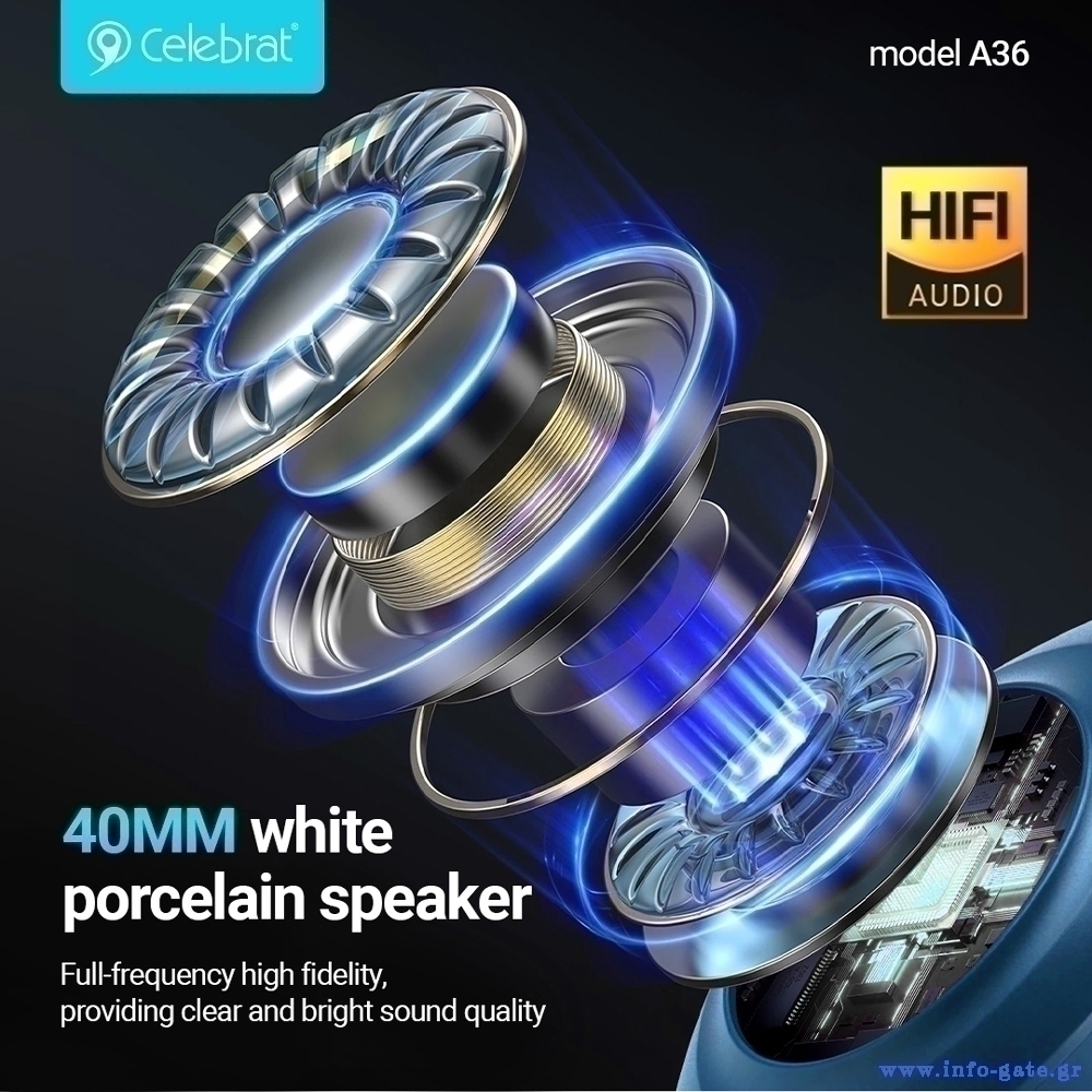 CELEBRAT headphones A36, ασύρματα & ενσύρματα, micro SD, 40mm, 250mAh, μαύρα