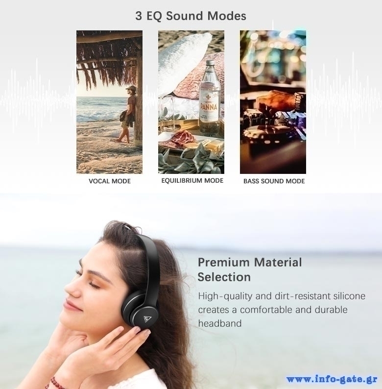 Χάρη στον σχεδιασμό τους, τα μαλακά μαξιλαράκια των ακουστικών και το μαλακό pad στο στεφάνι, εφαρμόζουν άψογα και προσφέρουν άνεση ακόμη και μετά από πολλές ώρες χρήσης.
