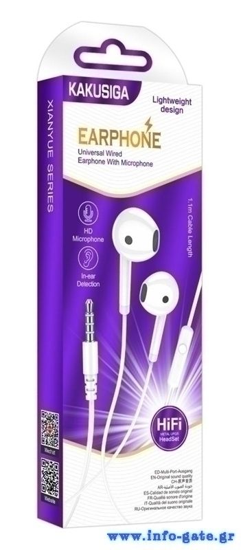 Τα ακουστικά της KAKUSIGA απογειώνουν την μουσική εμπειρία, προσφέροντας εξαιρετικά καθαρό και πλούσιο ήχο, ο οποίος αναδεικνύει την παραμικρή λεπτομέρεια του ακούσματος, ενώ, με το ενσωματωμένο μικρόφωνο υψηλής απόδοσης που διαθέτουν, σου επιτρέπουν να πραγματοποιήσεις τηλεφωνικές κλήσεις.