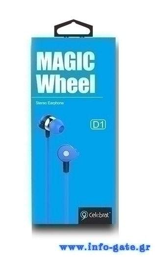 CELEBRAT earphones με μικρόφωνο D1, 3.5mm, Φ10mm, 1.2m flat, μπλε