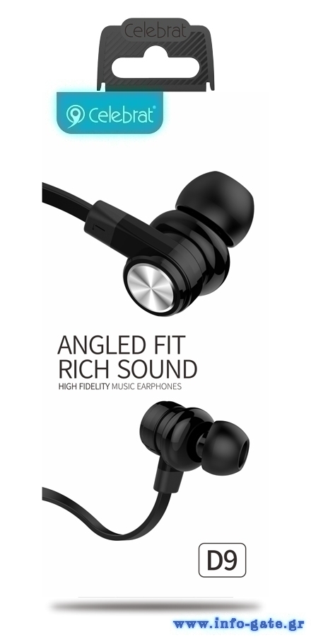 CELEBRAT earphones με μικρόφωνο D9, 3.5mm σύνδεση, Φ10mm, 1.2m, μαύρα