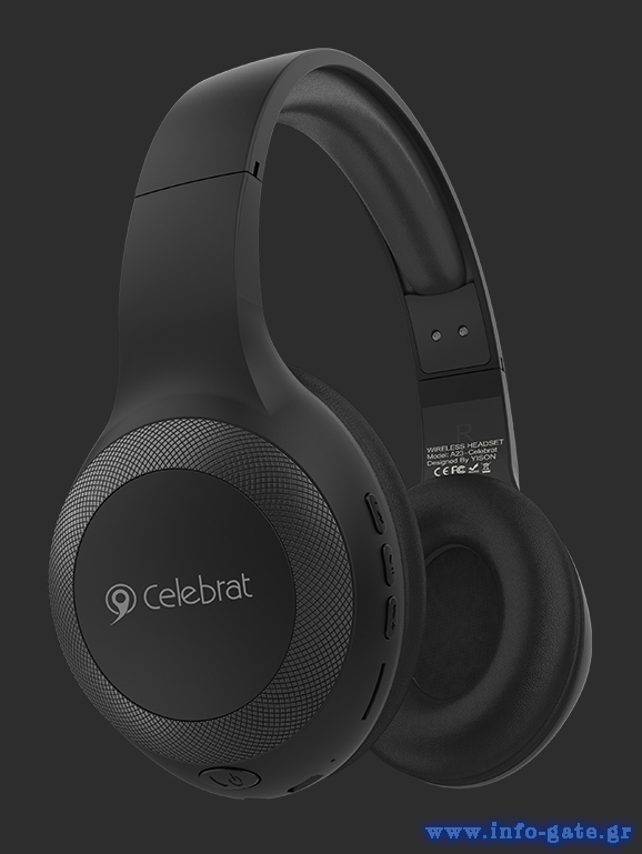 CELEBRAT headphones με μικρόφωνο A23-ΒΚ, bluetooth, 40mm, μαύρο