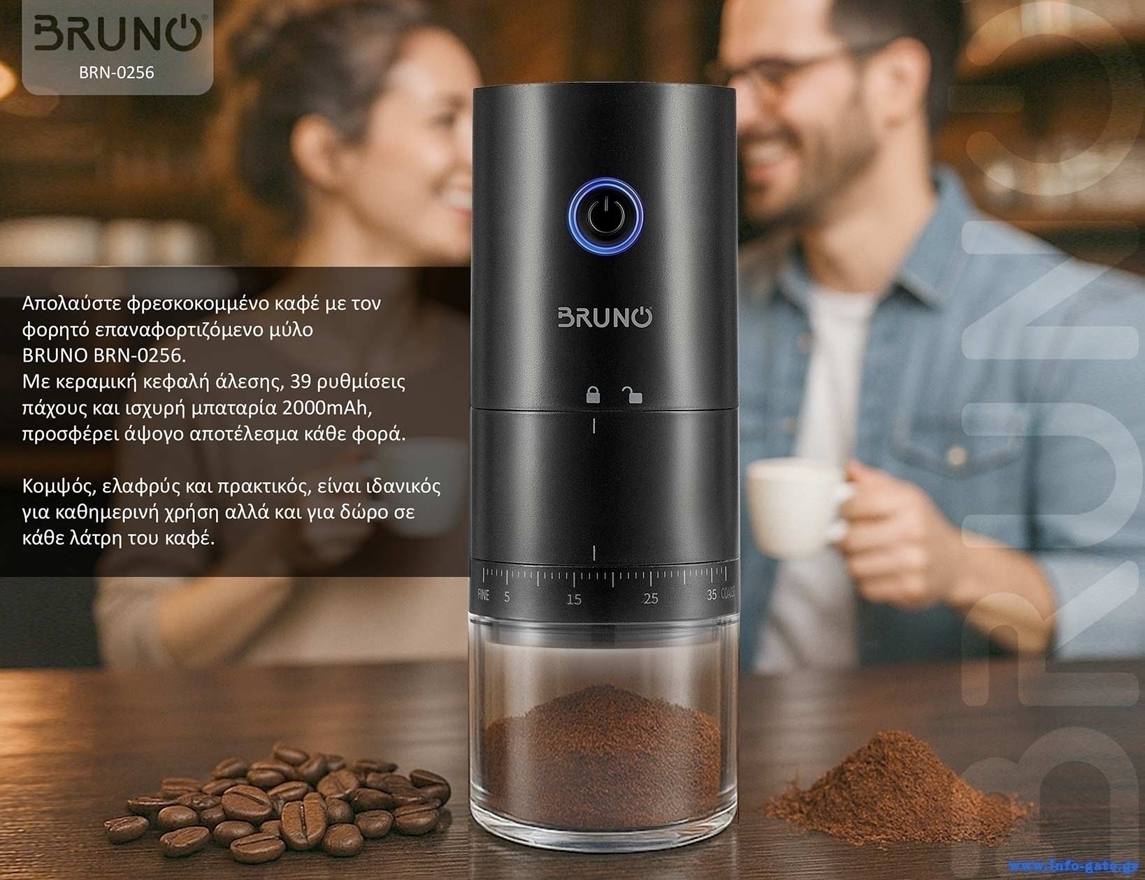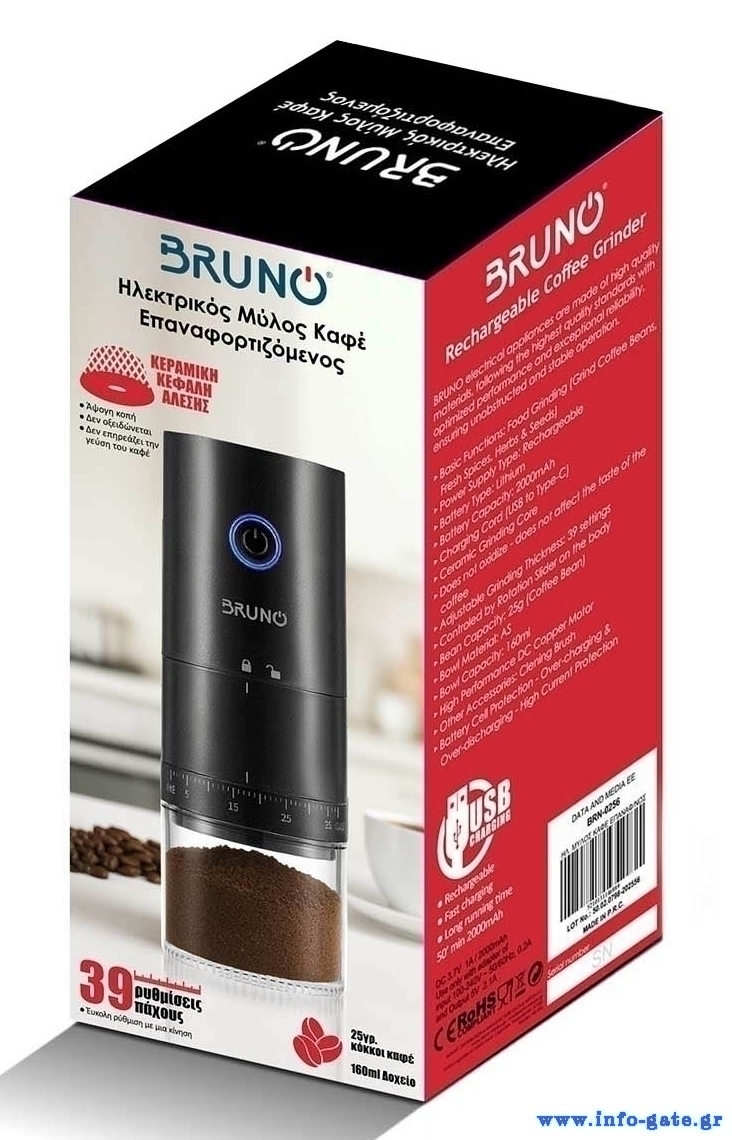 Ανακαλύψτε την απόλυτη εμπειρία του αυθεντικού καφέ με τον φορητό επαναφορτιζόμενο μύλο BRUNO BRN-0256.