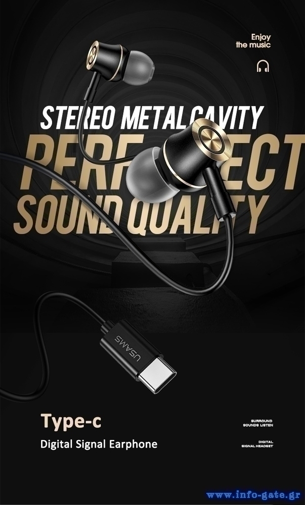 Τα ακουστικά της Usams απογειώνουν την μουσική εμπειρία, προσφέροντας εξαιρετικά καθαρό και πλούσιο ήχο, ο οποίος αναδεικνύει την παραμικρή λεπτομέρεια του ακούσματος, ενώ, με το ενσωματωμένο μικρόφωνο υψηλής απόδοσης που διαθέτουν, σου επιτρέπουν να πραγματοποιήσεις τηλεφωνικές κλήσεις.Διαθέτουν μεγάλο καλώδιο μήκους 1.2m και η σύνδεσή τους πραγματοποιείται μέσω υποδοχής Type-C.