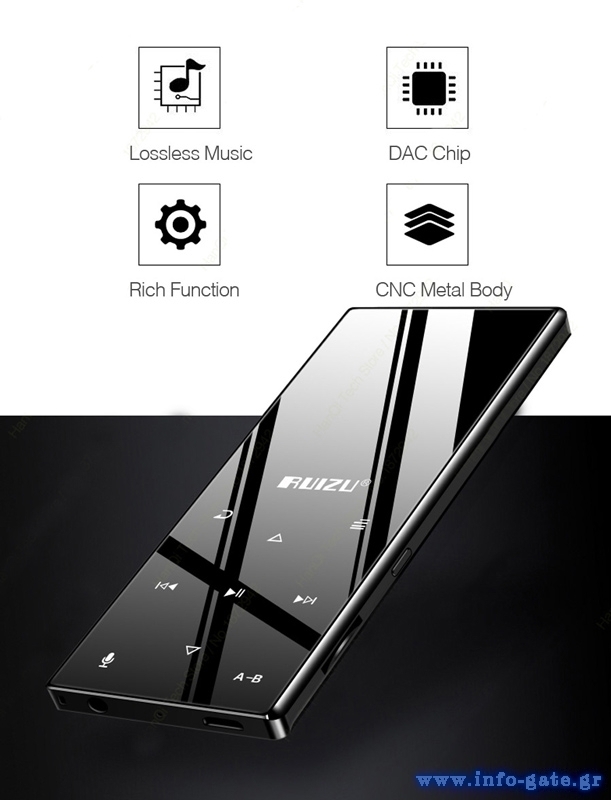 Απολαύστε την αγαπημένη σας μουσική και βίντεο στο MP3 D29 της Ruizu. Διαθέτει έγχρωμη οθόνη 1.8", πλήκτρα αφής και ενσωματωμένο ηχείο.