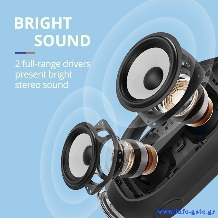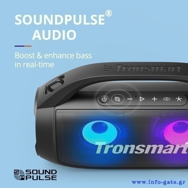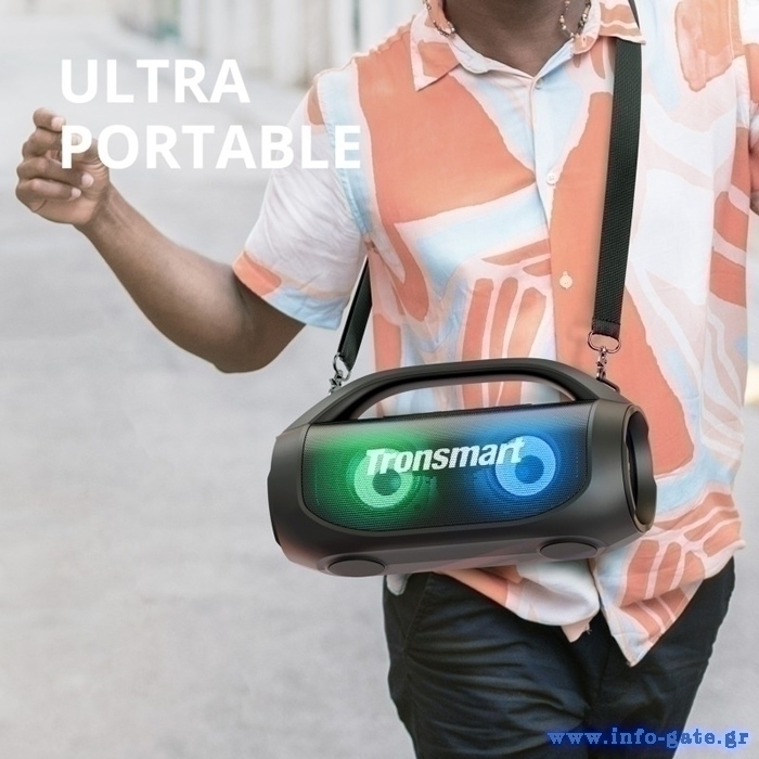 Ασύρματο φορητό ηχείο της Tronsmart για να σας συντροφεύει παντού, με εξαιρετική ποιότητα ήχου. Εξοπλίζεται με ενσωματωμένη, επαναφορτιζόμενη μπαταρία χωρητικότητας 4000mAh, που προσφέρει έως 24 ώρες αναπαραγωγής μουσικής. Η σύνδεση του για την αναπαραγωγή της μουσικής γίνεται ασύρματα μέσω Bluetooth, ενσύρματα μέσω 3.5mm καλωδίου, ενώ διαθέτει και υποδοχή για κάρτα μνήμης micro SD και USB flash drive. Υποστηρίζει TWS λειτουργία για ταυτόχρονη σύνδεση 2 ηχείων και φορτίζει μέσω USB-C θύρας.
