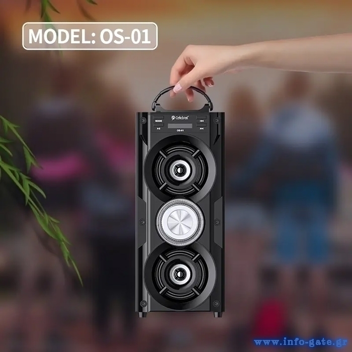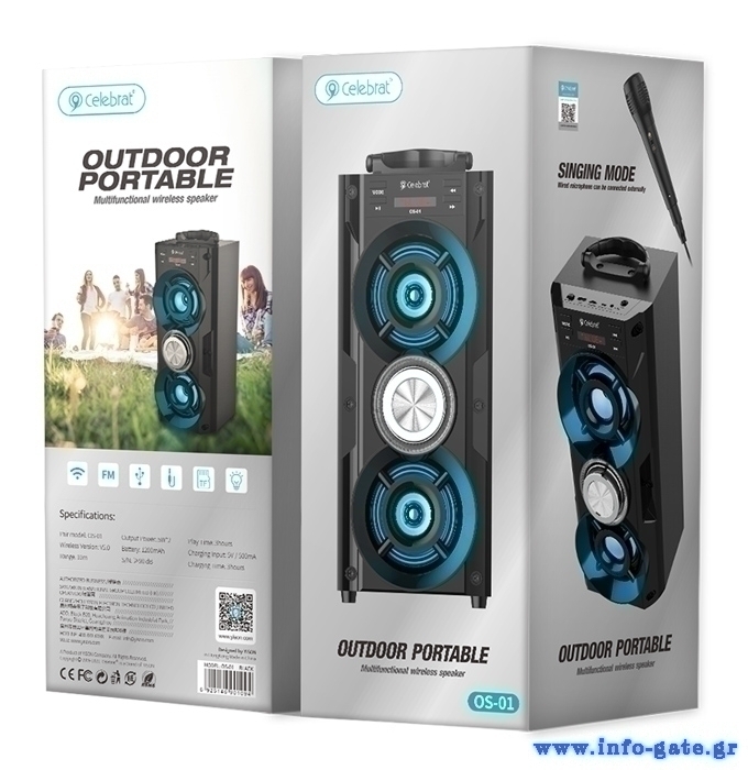 CELEBRAT φορητό ηχείο OS-01, 10W, 1200mAh, Bluetooth, FM, LED, μαύρο