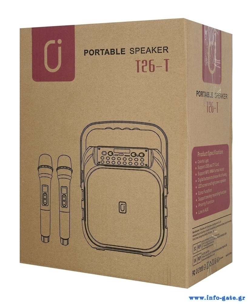 JYX φορητό ηχείο T26-T με 2x μικρόφωνα, 20W, 4000mah, LED, μαύρο