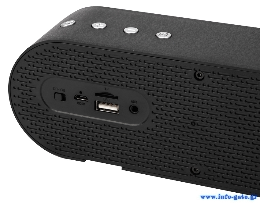 Εξοπλίζεται με ενσωματωμένη, επαναφορτιζόμενη μπαταρία χωρητικότητας 1200mAh, που προσφέρει έως και 4 ώρες μουσικής. Υποστηρίζει αναπαραγωγή μουσικής μέσω Bluetooth, θύρας 3.5mm, USB flash ή κάρτας micro SD.
