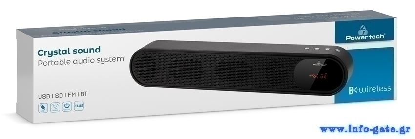 Soundbar της Powertech, κατασκευασμένο σύμφωνα με τα πλέον υψηλά ποιοτικά standard, με σύγχρονο design και εξαιρετική ποιότητα ήχου.