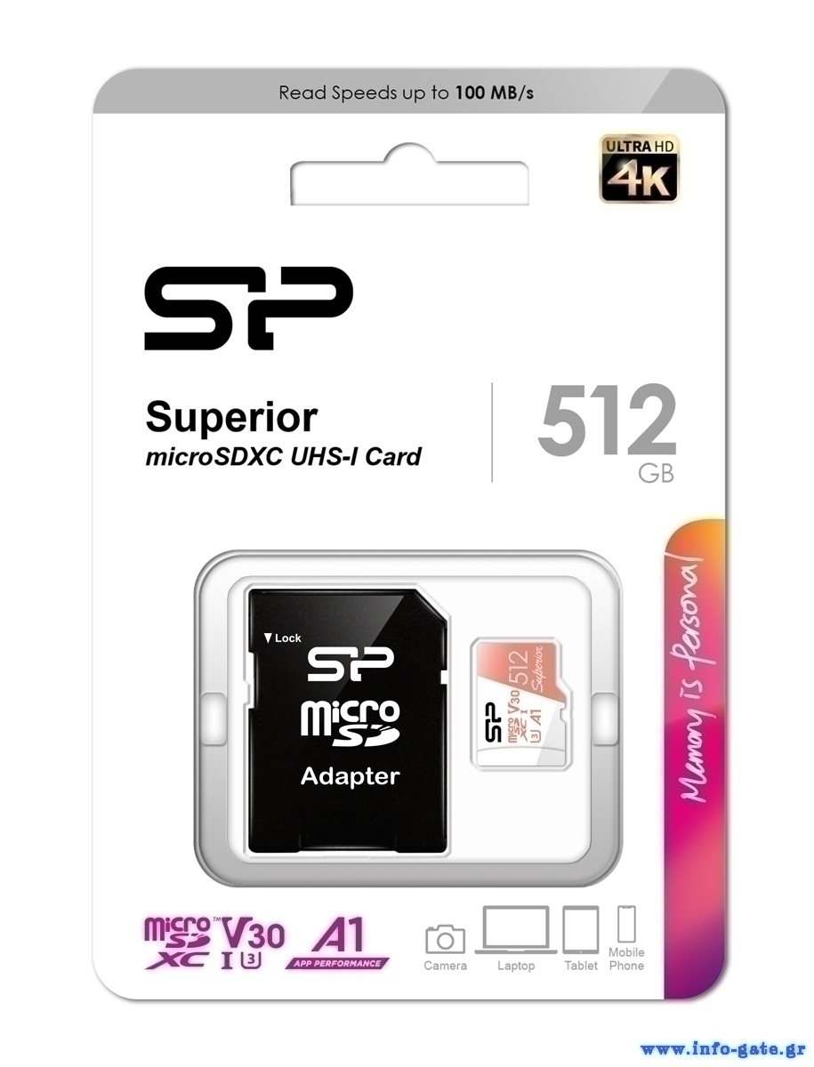 SILICON POWER κάρτα μνήμης microSDXC Superior, 512GB, C10 UHS-I U3 A1 V30