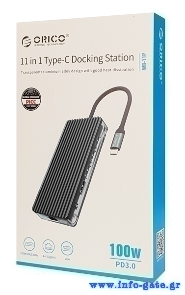 Το WB-11P είναι ένα πλήρες docking station 11 θυρών της Orico, για την σύνδεση των περιφερειακών του υπολογιστή σας.
