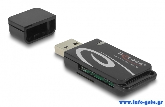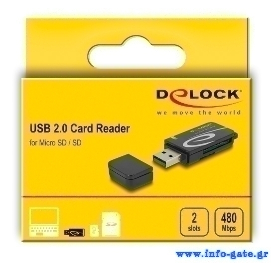 DELOCK card reader 91602 για SD & micro SD, USB, 480Mbps, μαύρο