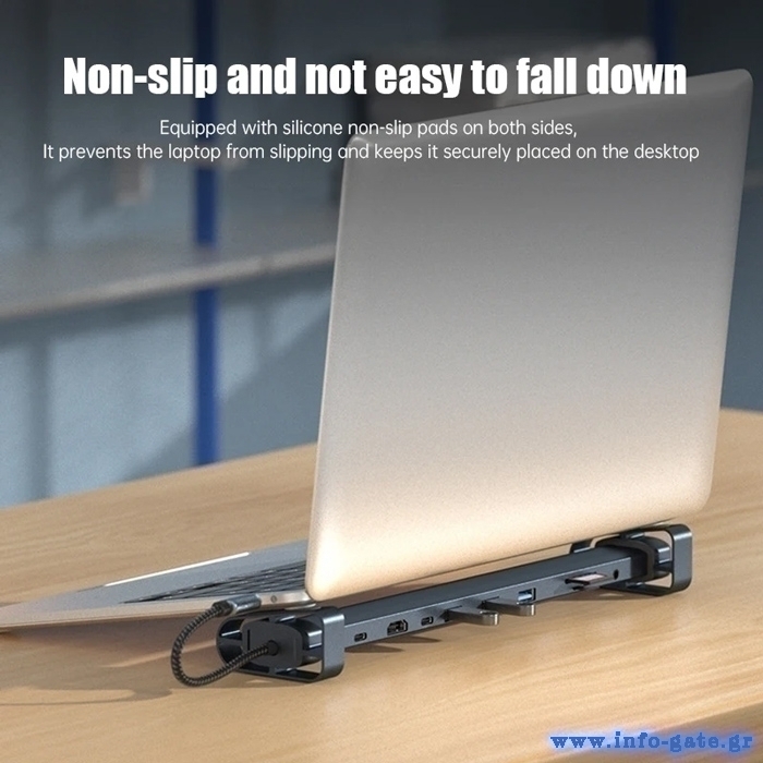 POWERTECH docking station PTR-0152, 10 θυρών, βάση laptop, USB-C, γκρι