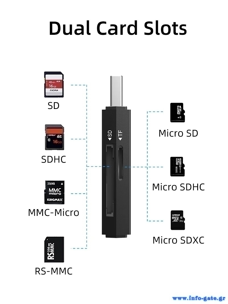 -Συμβατές κάρτες μνήμης: SDXC, SDHC, SD, MMC, RS-MMC, MicroSDXC, MicroSD, MicroSDHC Card