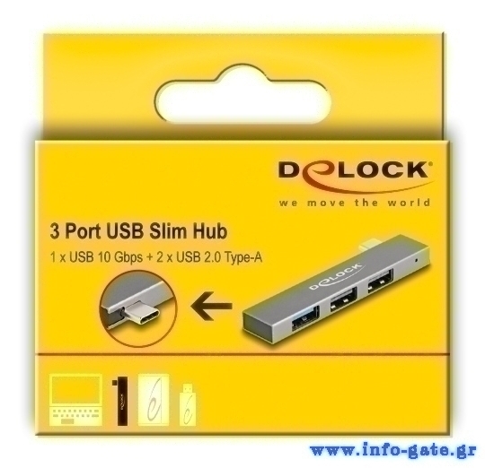 Αυτό το hub της Delock μπορεί να συνδεθεί με το laptop ή το desktop σας μέσω θύρας USB-C και να επεκτείνει τις θύρες του με 3x USB θύρες. Διαφορετικές συσκευές USB, όπως docking stations, card readers κ.λπ. μπορούν να συνδεθούν μέσω του hub.