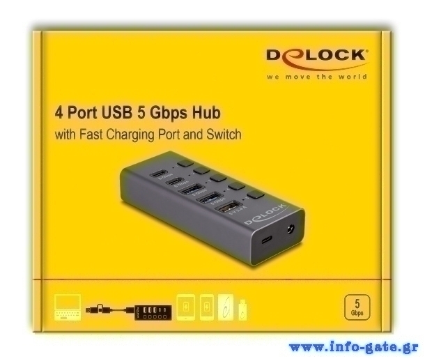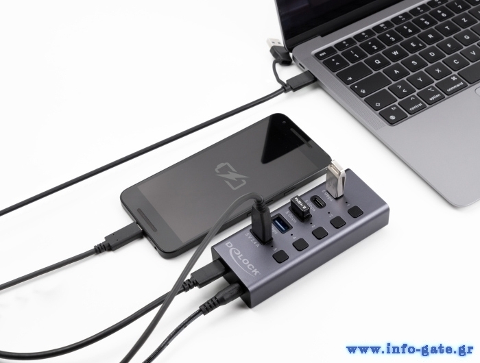 Αυτό το USB hub της Delock μπορεί να συνδεθεί με το laptop ή το desktop σας μέσω θύρας USB ή USB-C και να επεκτείνει τις θύρες του με 5x USB θύρες (2x USB/2x USB-C για μεταφορά δεδομένων & 1x USB για φόρτιση).