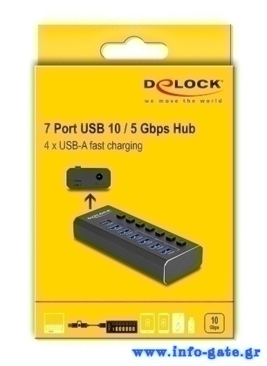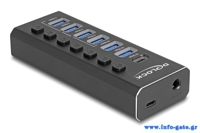 DELOCK USB hub 64326 με διακόπτες, 7x θυρών, 10Gbps, USB/USB-C σύνδεση, μαύρο