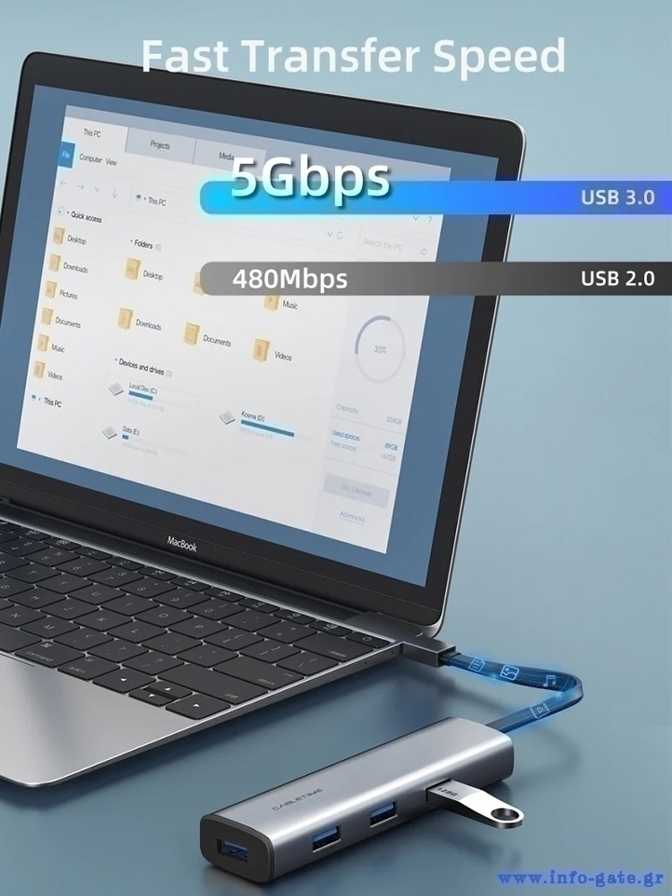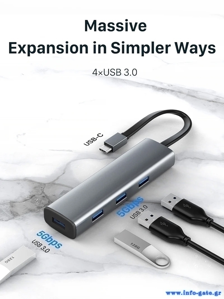 USB hub από την Cabletime που συνδέεται στον υπολογιστή ή το laptop σας μέσω θύρας USB-C, επεκτείνοντας τις θύρες του με 4x USB επιτρέποντας σας να συνδέσετε οποιαδήποτε συσκευή διαθέτει έξοδο USB, όπως σκληρούς δίσκους, ποντίκι, πληκτρολόγιο, web κάμερα, card reader και άλλες συσκευές.