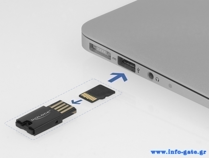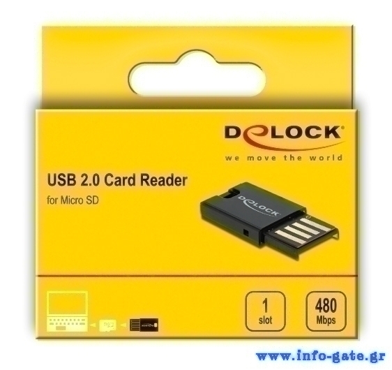 Το card reader της Delock μπορεί να χρησιμοποιηθεί για ανάγνωση και εγγραφή καρτών μνήμης Micro SD. Συνδέεται απευθείας σε ηλεκτρονικό υπολογιστή ή laptop μέσω θύρας USB.