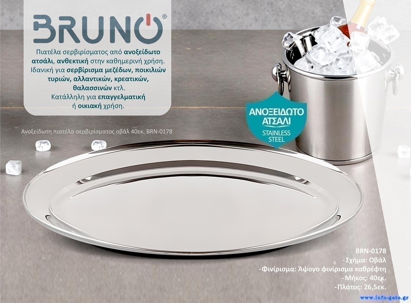 BRUNO ανοξείδωτη πιατέλα σερβιρίσματος BRN-0178, οβάλ, 40εκ.