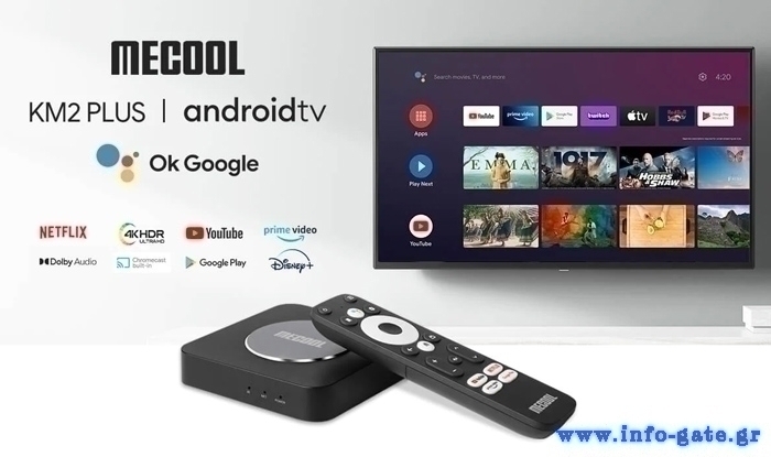 Το TV box KM2 Plus της Mecool, συνδέεται στη θύρα HDMI της τηλεόρασής σας και την μετατρέπει σε smart TV. Διαθέτει λειτουργικό σύστημα Android 11 με υψηλής απόδοσης τετραπύρηνο επεξεργαστή και υποστηρίζει ανάλυση 4K.