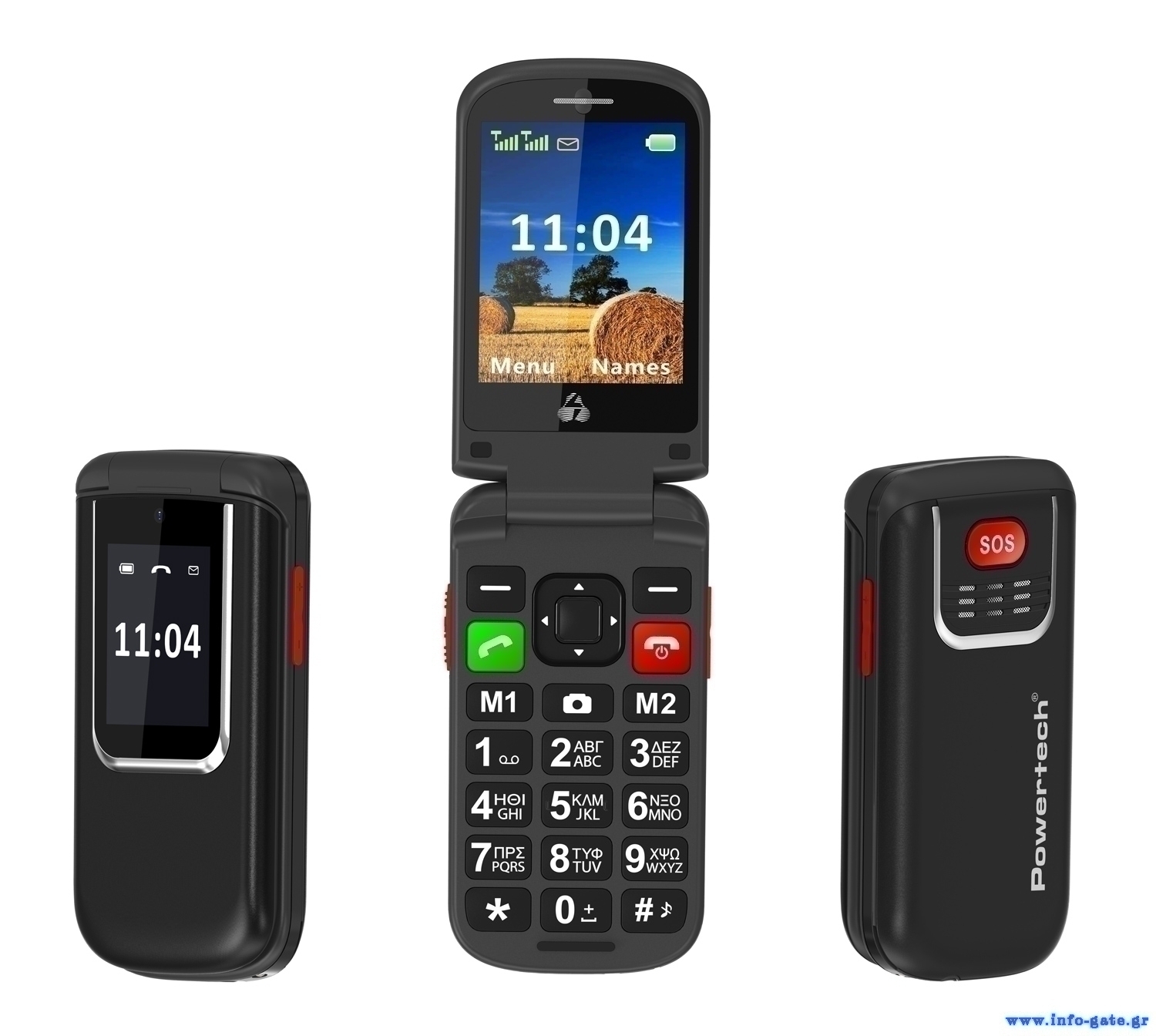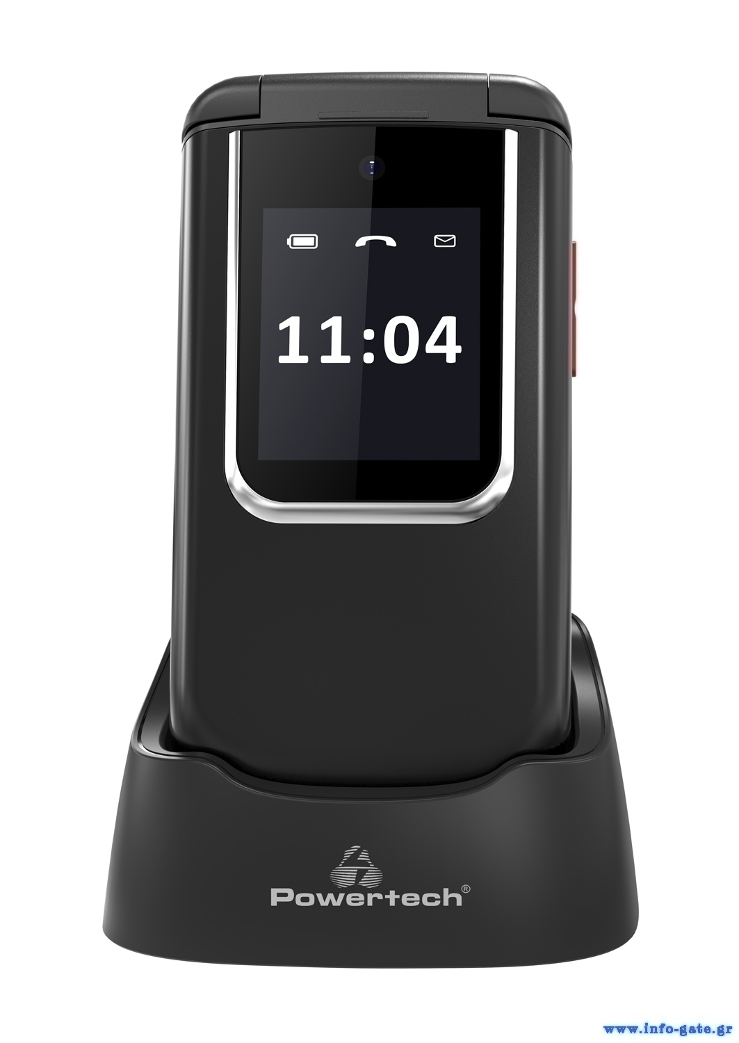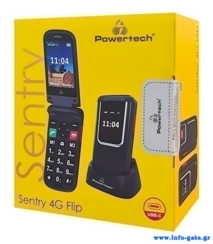 POWERTECH κινητό τηλέφωνο Sentry 4G Flip, 2.8/1.77", dual SIM, πλήκτρο SOS, μαύρο