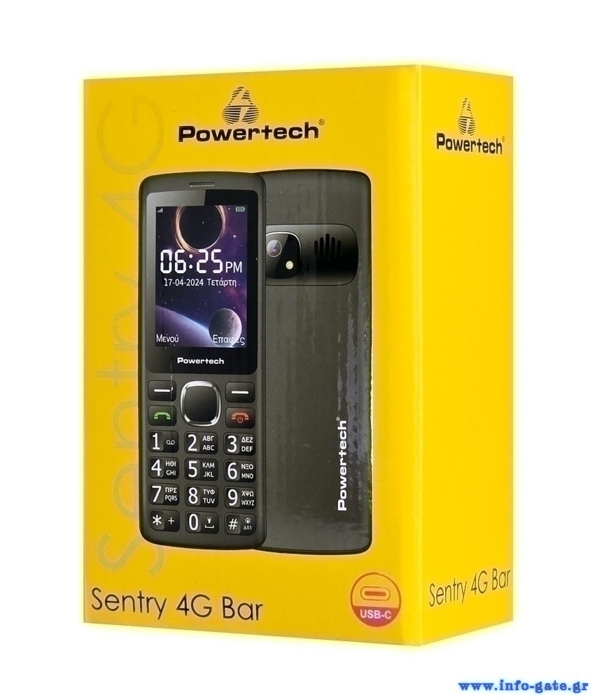 POWERTECH κινητό τηλέφωνο Sentry 4G Bar, 2.4", dual SIM, με κάμερα, μαύρο