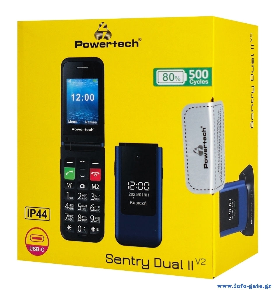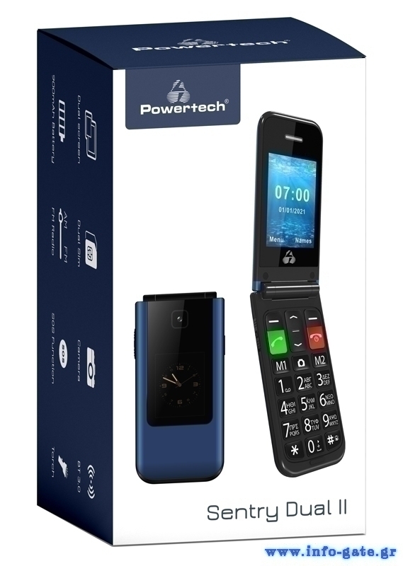 POWERTECH κινητό τηλέφωνο Sentry Dual II V2, 2 οθόνες, dual SIM, πλήκτρο SOS, μπλε