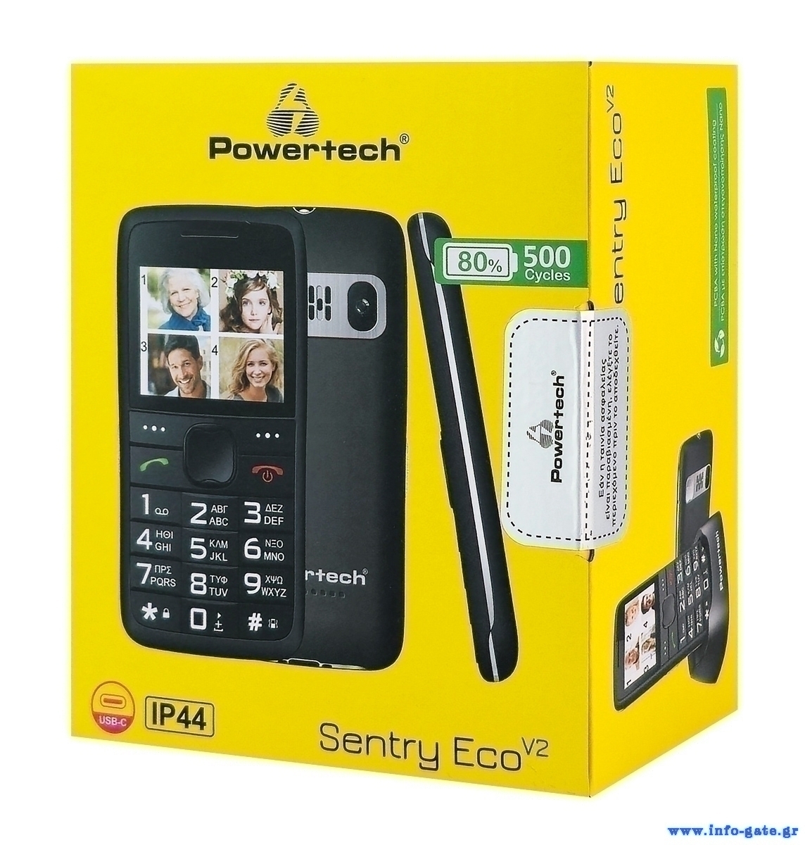 POWERTECH κινητό τηλέφωνο Sentry Eco V2, dual SIM, πλήκτρο SOS, μαύρο
