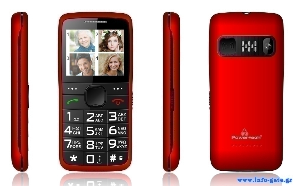 POWERTECH Κινητό Τηλέφωνο Sentry Eco PTM-25, SOS Call, με φακό, κόκκινο