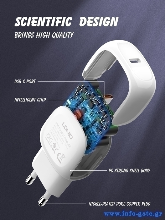 Υψηλής απόδοσης USB φορτιστής τοίχου της LDNIO, κατασκευασμένος από ανθεκτικό υλικό και συμβατός με όλες τις συσκευές που φορτίζουν μέσω USB θύρας.