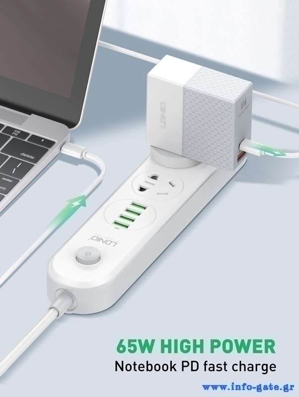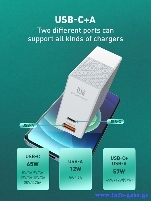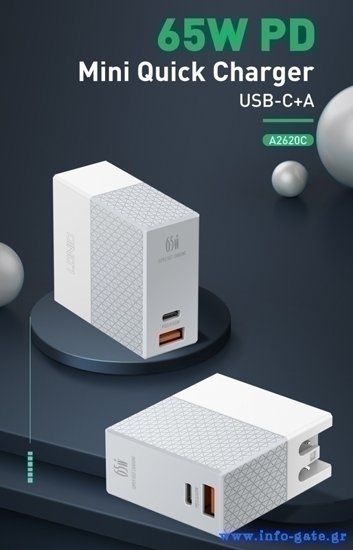 -2x θύρες εξόδου, USB & USB-C, με μέγιστη απόδοση 65W