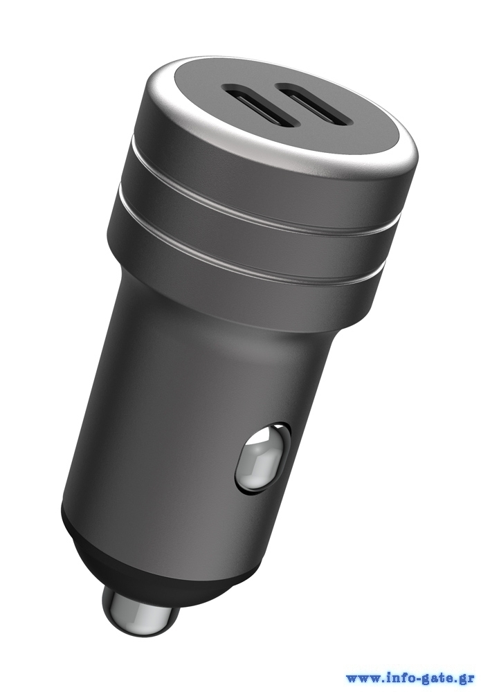 POWERTECH φορτιστής αυτοκινήτου PT-1149, 2x USB-C, 100W PD, γκρι