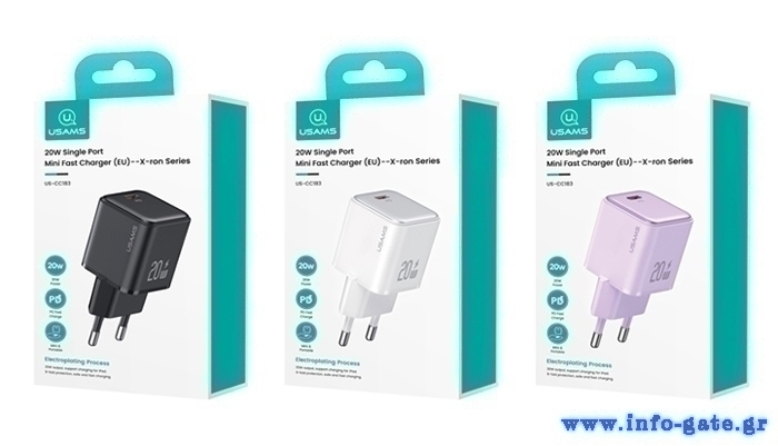 USAMS φορτιστής τοίχου US-CC183, USB-C θύρα εξόδου, 20W PD, μωβ