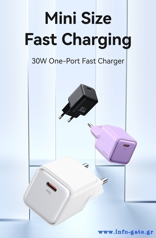 USAMS φορτιστής τοίχου US-CC186, USB-C θύρα εξόδου, 30W PD, μωβ
